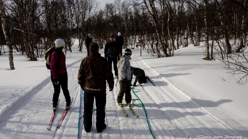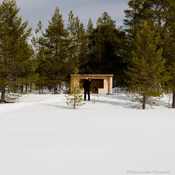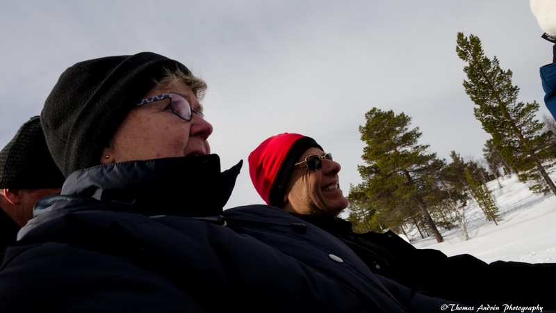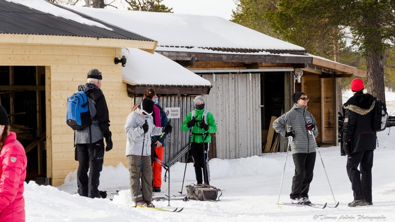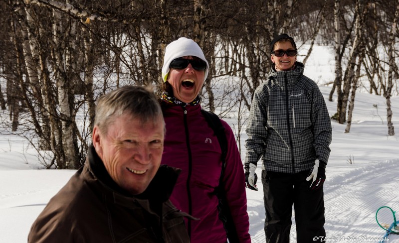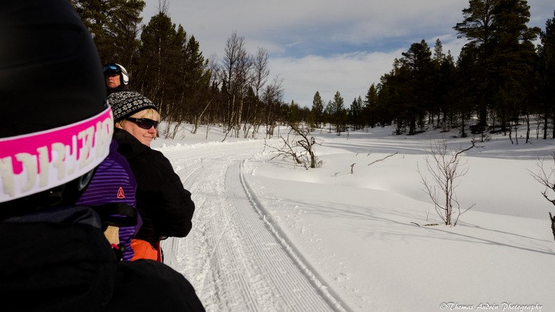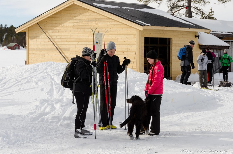 Som vanligt gick det att åka skoter till Falkboets våffelstuga och denna vecka (v14) var det många som ville åka med. Både sittande i skotersläden och tolkande efter. Per-Roger körde skotern och på vanligt säkert sätt tog han oss de ca 8 km till våffelstugan.