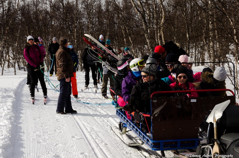 Vår egen lift är i gång det finns dragpulkor o sparkar att hyra.