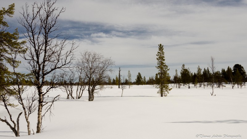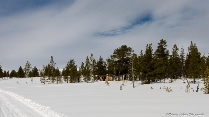 Snön har nu lagt sig och snötäcket växer så sakteliga. Kjell har kört med skoter för att förbereda grunden till årets skidspår.